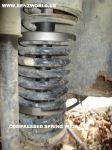 Once the spring is compressed you can lift it over the lip and pull the spring without even having to remove the lower control arm! You can also fully de-compress the spring while it is out of the vehicle by reversing the turn on the 19mm bolt.