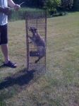My kid set the trap with apples and lettus and at first we caught a bunny rabbit. Frustrated because my kid insisted on keeping it, then cried for days after I let it go, we tried some diffrent bait. This time we used some bread and caught a ground hog. It must have been the same one the dog has been chasing living under the 2nd garage we store the bikes and lawn equipment in. I took that sucker 4 miles down the road to let him go.