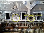I don't have an oil-feed-diagram, & would think that any oil-feed-hole through the heads is a drain, since the lifters & push-rods are what I'd guess provide the OHV lubrication. Having said this, I "should" have coolant leaking into the sump, & not oil leaking into the cooling system if the head-gasket has failed in this way. The rad-cap indicates good pressure in the system that holds well when hot, & sucks from the reservoir when cooling down.