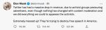 It's fun watching Elon fuck this all up! He actually thinks members of Twitter are his employees or something! It's very odd, actually it's quite sad.