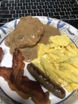 Welp... every since the kids moved out the woman has not been buying breakfast goodies like bacon and eggs... guess it doesn't matter much anyway, since when my youngest finished school this year she quit making breakfast all together and sleeps in...