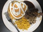 Looking like beef tip - surf and turf over here... no having to run and pick up take-out every night! Of course the last time I bought two packs of beef I ended up going to California and eating Subway for my birthday! lol