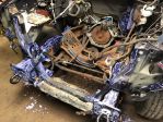 Obviously, I'm not set up to remove the cab from the frame here... so removing the engine from the front was the only option, which required full removal of front clip (less fenders)... it was probably a good idea since we have found many places that are just starting to pop, where if treated now it would go a long way in ensuring 'ole "Big Blue" stays solid, rather than getting further rotted and weak.