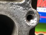 I was completly shocked at how hard these studs were to remove, even after the manifold had been removed and the stud heated cherry red with a large pair of vice grips! Usually they will just twist out by hand, but not on this one! I literally had to head the stud four or five times to get it moving without heat, and even then they were tight until the last remaning threads! Then the worst happend... By chance I looked into one of the holes and noticed that they were turning to powder, sometimes with only four threads remaining towards the outside! This meant heli-coils or time certs! And it was looking like this would be the case for ALL 20!