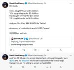 No reply from Elon about how he spent more for Twitter than had he bought four MAJOR automotive companies... but whatever.