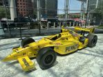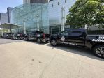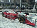 Outside GM renaissance center - Silverado truck for each Indy driver with their name on it.