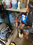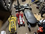 The flake on that candy red metallic paint job is so pretty I don't want to get it dirty! LOL, but next to that is my trusty old jack that is also about six years old, the new transmission jack and my new creeper... guess my fat ass was just too much for them 200lb capacity parts store creepers as the wheels would fall off, frame would bend or the wood backing would break... sometimes all three! I went thru a few of them over the years, got my ponytail stuck in the wheel of the last creeper and lets just say that creeper is no longer with us anymore. The new one has nice big wheels and is very sturdy! It will be VERY nice in the winter when the floor is cold and wet!