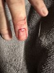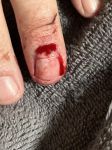 It looks much worse today -- black and blue, skin trying to grow into the old skin still attached to the nail after it ripped it out.. I have to carve that stuff away after I'm done out in the garage today...