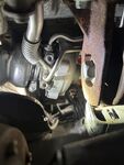 I've got a 2017 Expedition here with the 3.5L V6 EcoBoost where the left drivers side catalytic converter is operating below efficiency... I fear the converter is clogged or at least coated -- but the front inlet and outlet turbo tubes are coated in oil sweat, and it would appear both turbos are leaking coolant at the bottom line too (not a whole lot but you can see a drip, wetness and the classic white stains from dried coolant!)